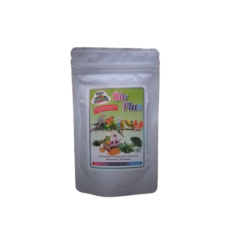 Evia Parrots Bio Plus - ΤΟ BIO PLUS ΕΙΝΑΙ ΕΝΑ ΕΝΕΡΓΕΙΑΚΟ ΔΙΑΤΡΟΦΙΚΟ ΜΙΓΜΑ ΓΙΑ ΠΟΥΛΙΑ ΣΥΝΤΡΟΦΙΑΣ ΠΟΥ ΣΥΜΒΑΛΕΙ ΣΤΗ ΦΥΣΙΟΛΟΓΙΚΗ ΛΕΙΤΟΥΡΓΙΑ ΤΟΥ ΝΕΥΡΙΚΟΥ ΚΑΙ ΑΝΟΣΟΠΟΙΗΤΙΚΟΥ ΣΥΣΤΗΜΑΤΟΣ, ΟΠΩΣ ΚΑΙ ΣΤΗΝ ΠΡΟΣΤΑΣΙΑ ΤΟΥ ΟΡΓΑΝΙΣΜΟΥ ΑΠΟ ΤΟ ΟΞΕΙΔΩΤΙΚΟ ΣΤΡΕΣ. ΤΑ ΕΥΕΡΓΕΤΙΚΑ ΣΥΣΤΑΤΙΚΑ ΤΟΥ BIO PLUS ΑΠΟΤΕΛΟΥΝΤΑΙ ΑΠΟ ΒΙΟΛΟΓΙΚΕΣ ΠΡΩΤΕΣ ΥΛΕΣ (ΣΠΙΡΟΥΛΙΝΑ, ΚΟΥΡΚΟΥΜΑΣ, ΕΧΙΝΑΤΣΙΑ, ΜΑΪΝΤΑΝΟΣ, ΜΠΡΟΚΟΛΟ ΑΝΑΜΕΣΑ ΣΕ ΠΟΛΛΑ ΑΛΛΑ ΣΥΝΘΕΤΟΥΝ ΤΗΝ << ΘΑΥΜΑΤΟΥΡΓΗ >> ΤΟΥ ΣΥΝΘΕΣΗ), ΠΛΟΥΣΙΕΣ ΣΕ ΒΙΤΑΜΙΝΕΣ, ΑΜΙΝΟΞΕΑ, ΜΕΤΑΛΛΑ ΚΑΙ ΛΙΠΑΡΑ ΟΞΕΑ. ΟΔΗΓΙΕΣ ΧΡΗΣΗΣ: ΑΝΑΚΑΤΕΥΕΤΑΙ 50gr BIO PLUS ΣΕ 1 ΚΙΛΟ ΑΥΓΟΤΡΟΦΗΣ