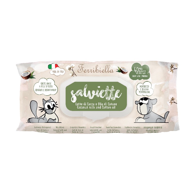 Ferribiella Μαντηλάκια Καθαρισμού με γαλα καριδας ελαιο βαμβακιου 40τμχ